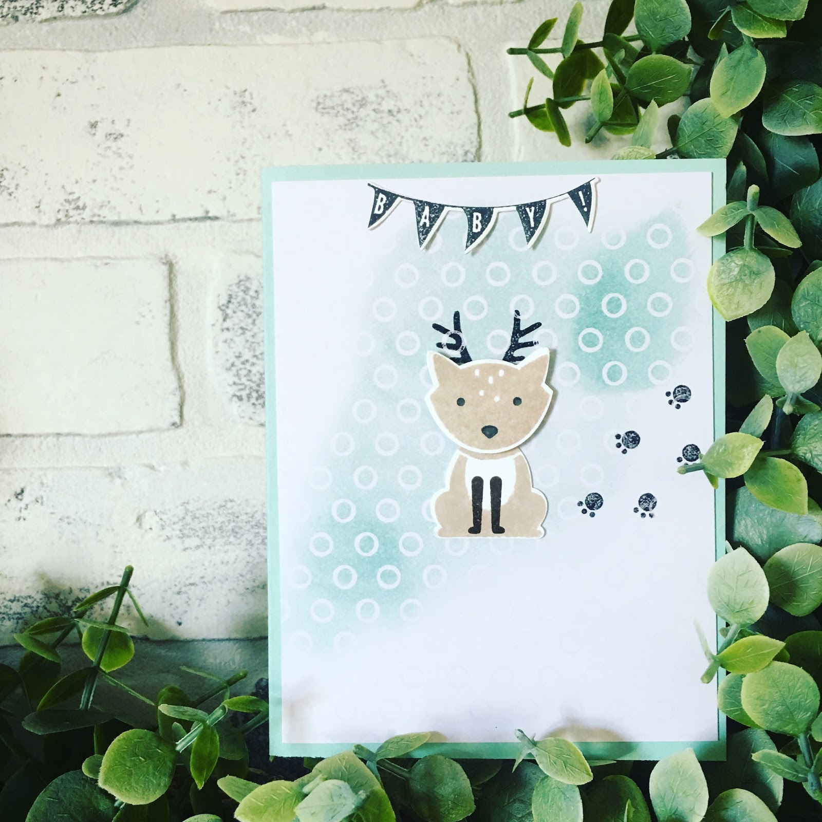 Oh deer baby! Use the Foxy Friends bundle to whip up a cute card for a dear baby! The resist paper is used again for a muted background.