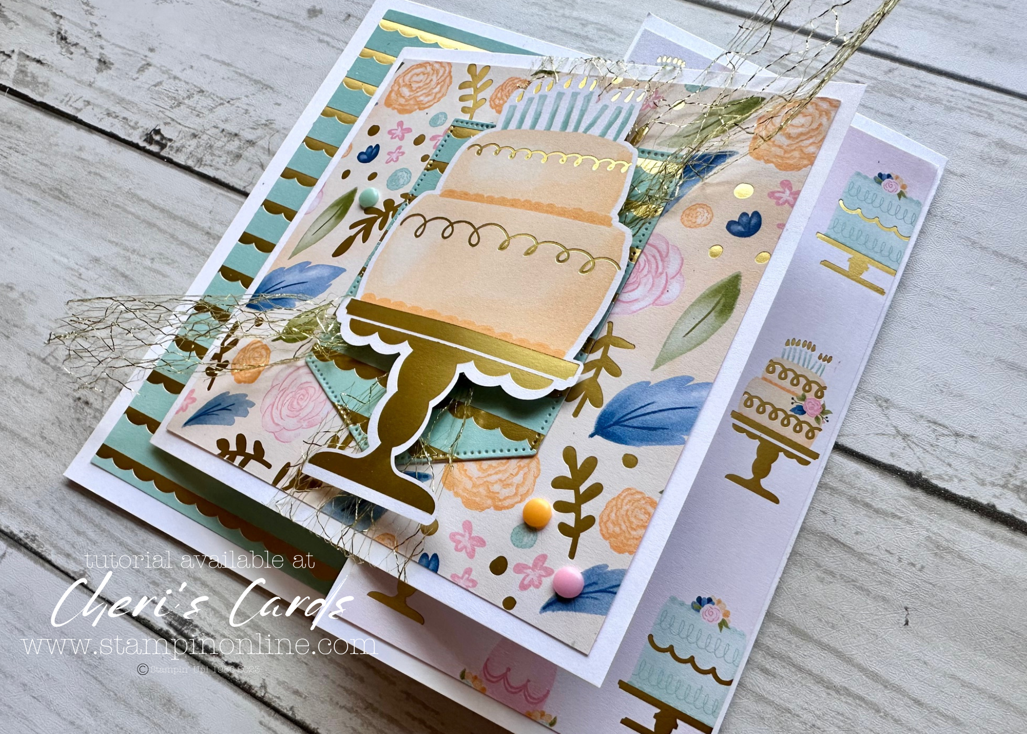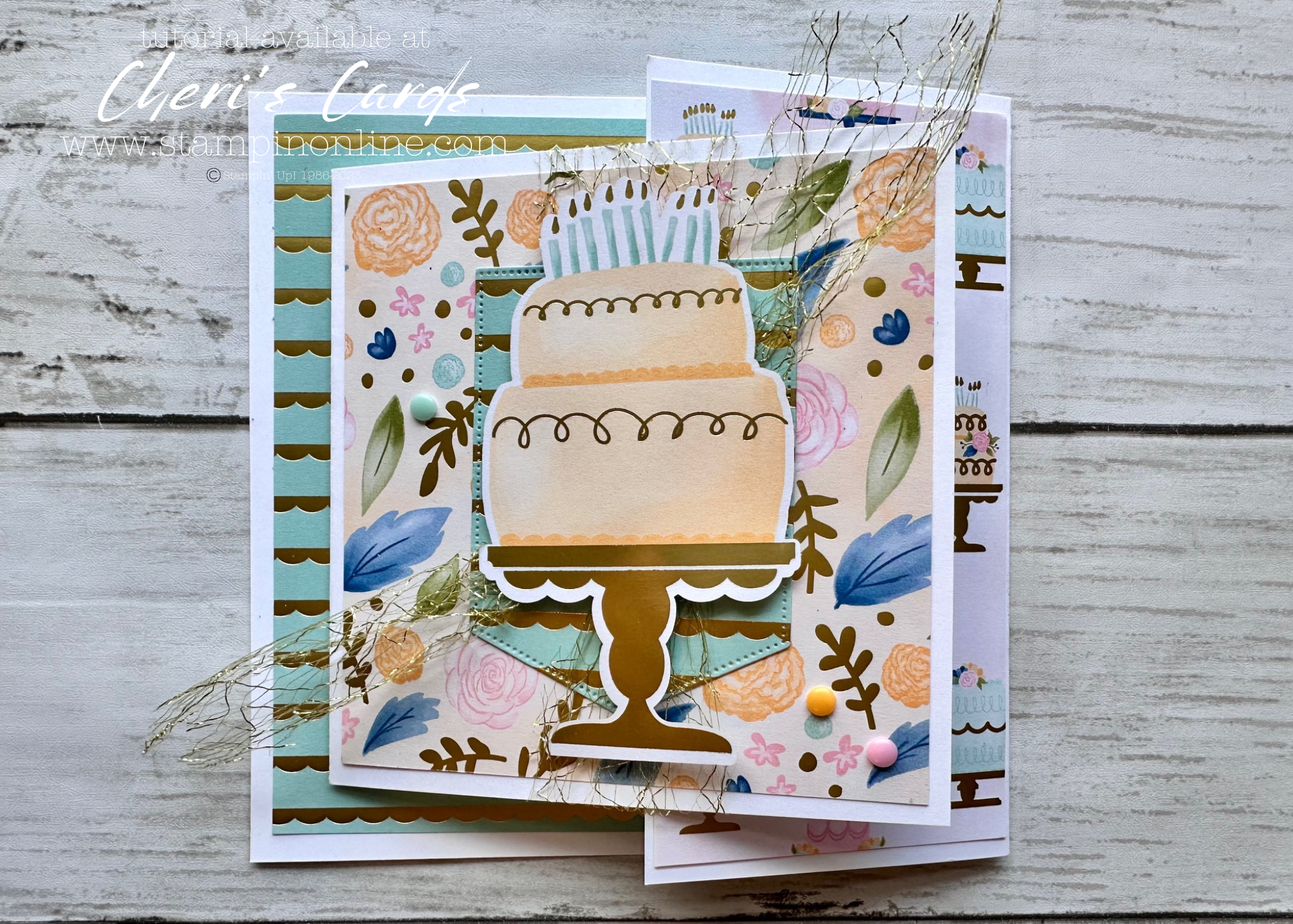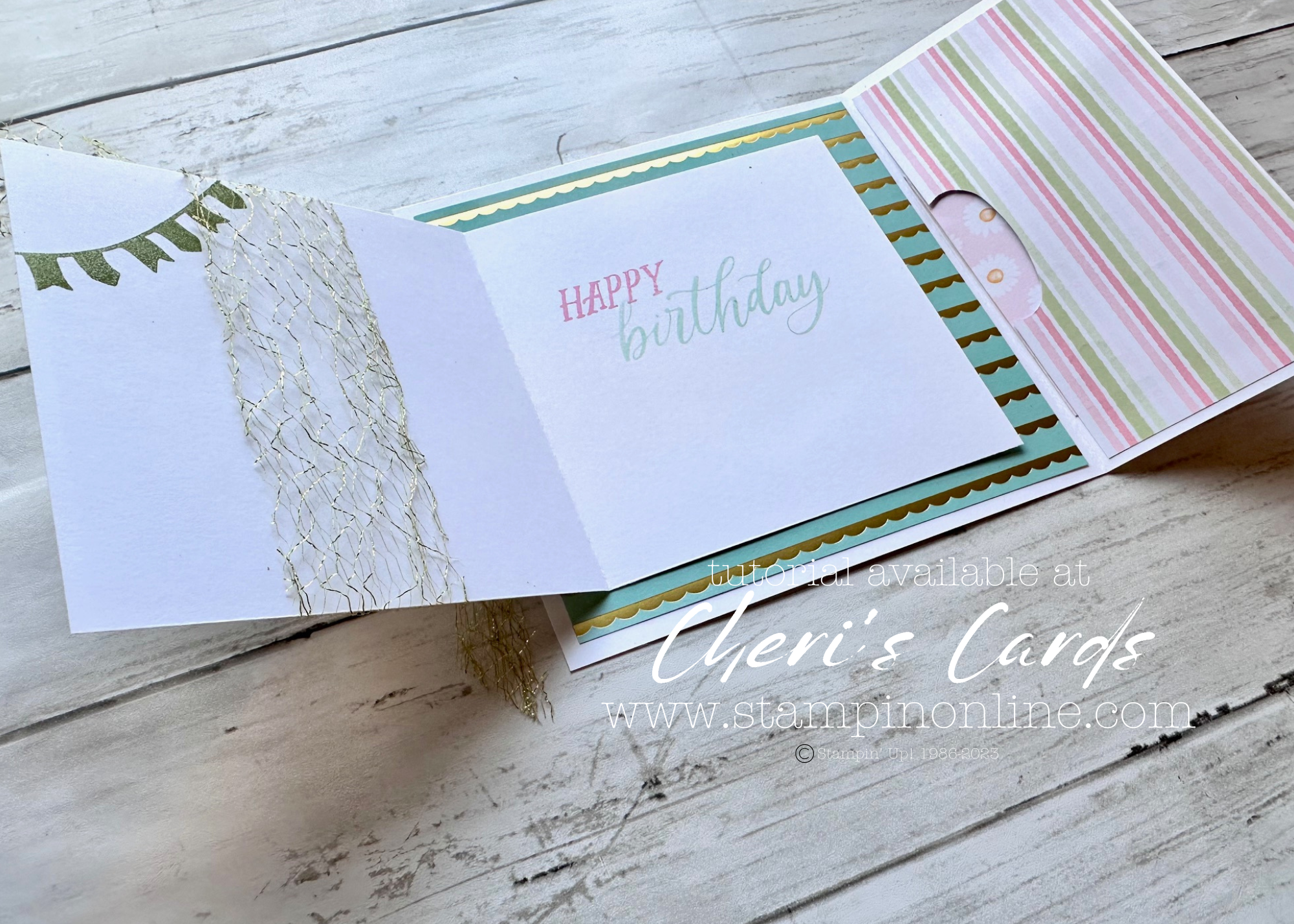 The original card from the past Try It (seen in the tutorial) was designed for a wedding card – both that and a birthday make a gift card (or cash!) seem a bit more special when it’s included in a fabulous card.