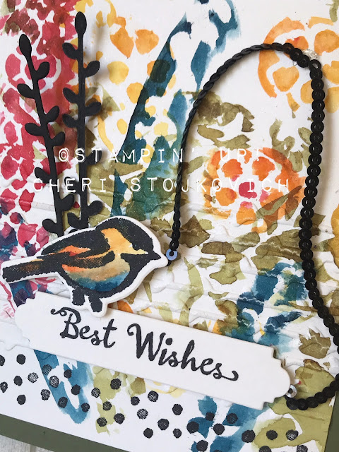 I used it in a more traditional way to color in the bird. Here is the video – you can watch here or on my YouTube channel (Cheri’s Cards) for a better viewing experience: