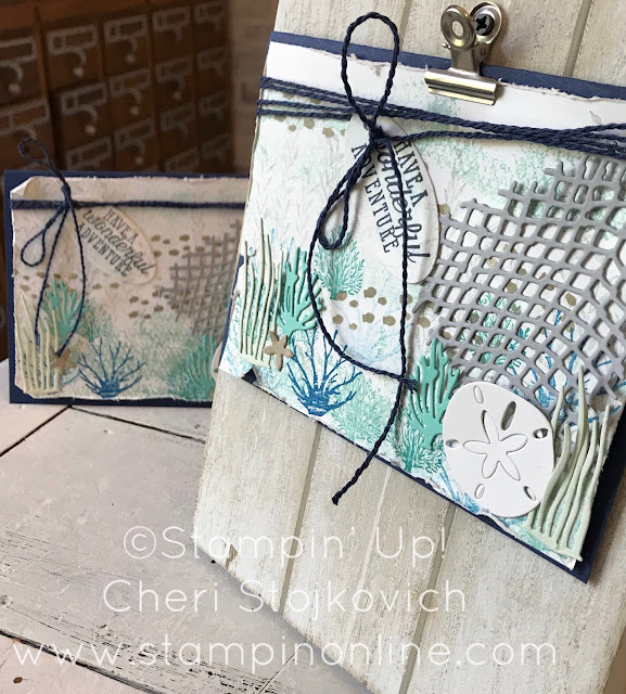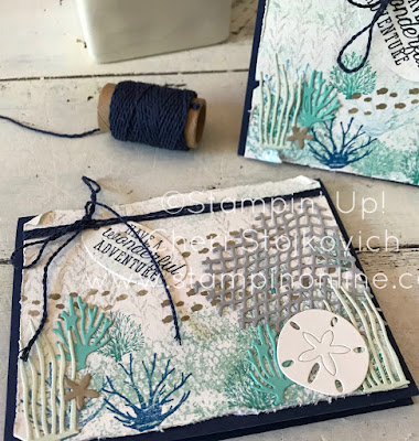 The stamp set is called Sea of Texture – but the fun REALLY starts when you throw in the dies. Let’s just say Stampin’ Up! is really starting to knock it out of the park with the dies – each catalog has more and more dies that just don’t cut – and wait til you see ALL that this new Annual Catalog has to offer! The Under the Sea Framelits – well watch the video and take a look!