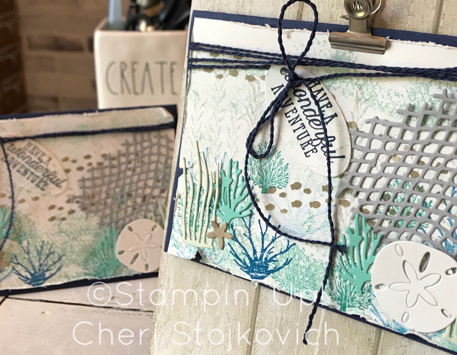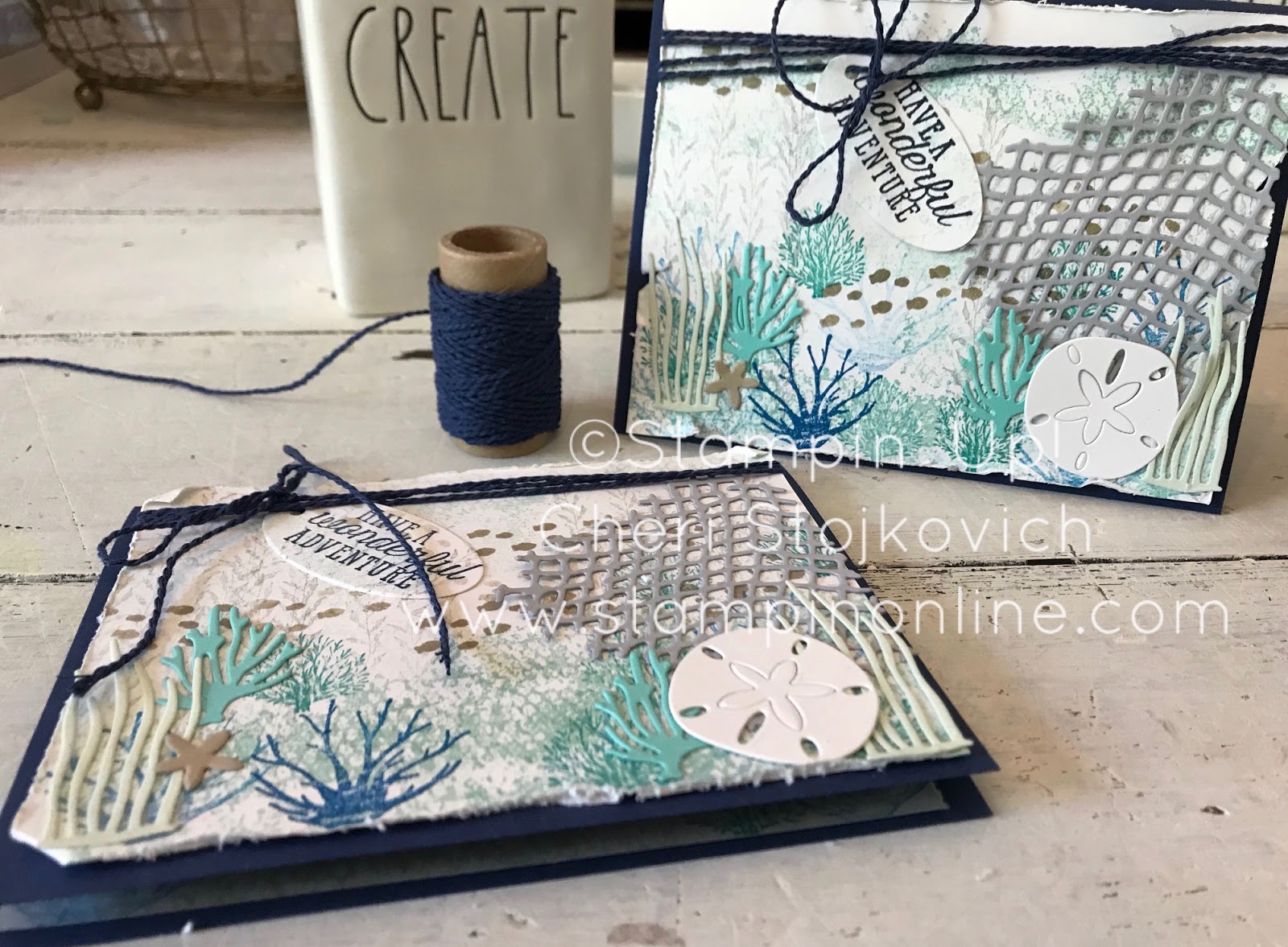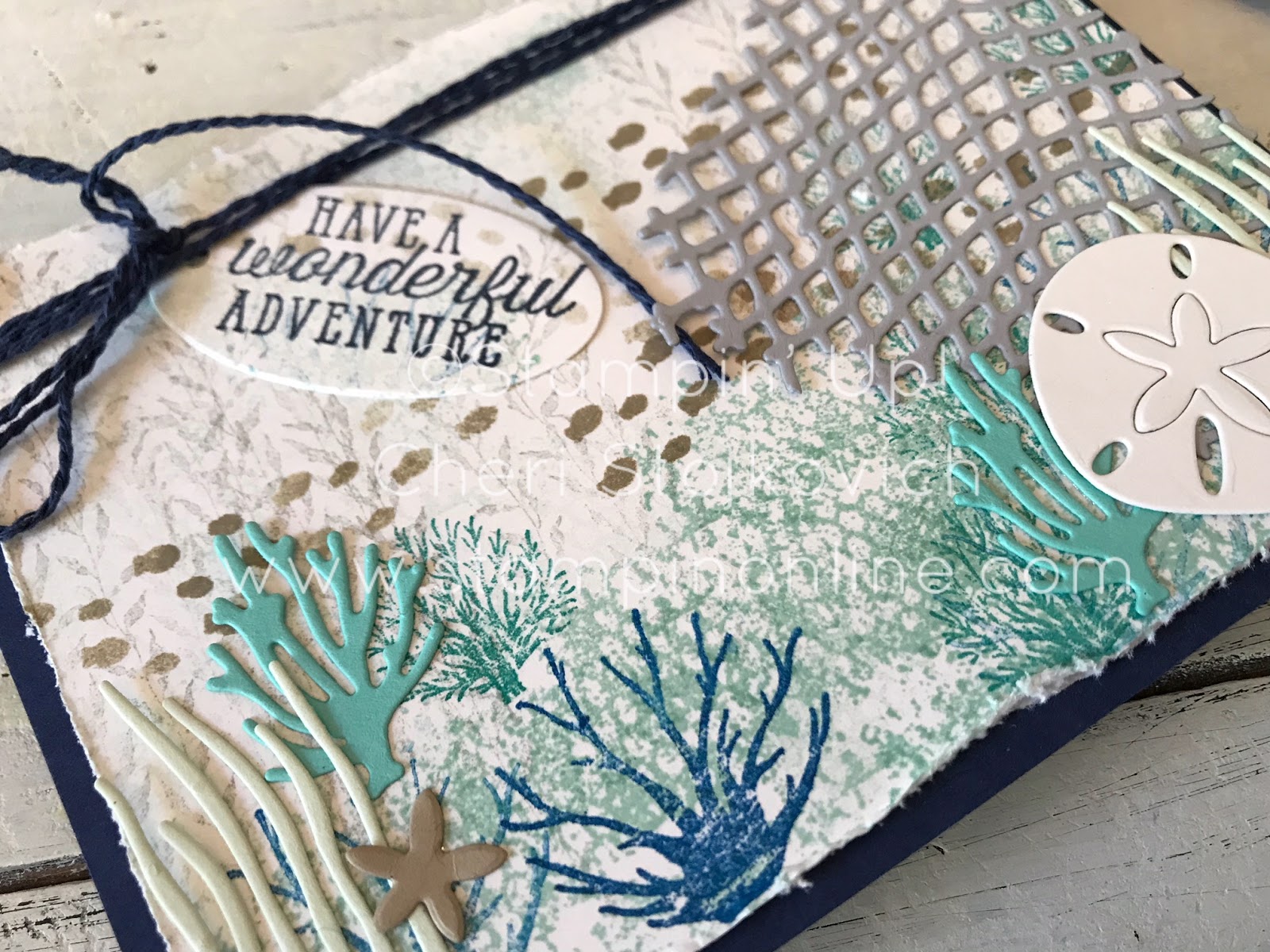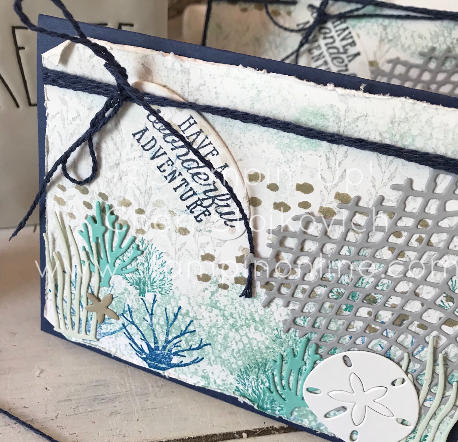 The stamp set is called Sea of Texture – but the fun REALLY starts when you throw in the dies. Let’s just say Stampin’ Up! is really starting to knock it out of the park with the dies – each catalog has more and more dies that just don’t cut – and wait til you see ALL that this new Annual Catalog has to offer! The Under the Sea Framelits – well watch the video and take a look!