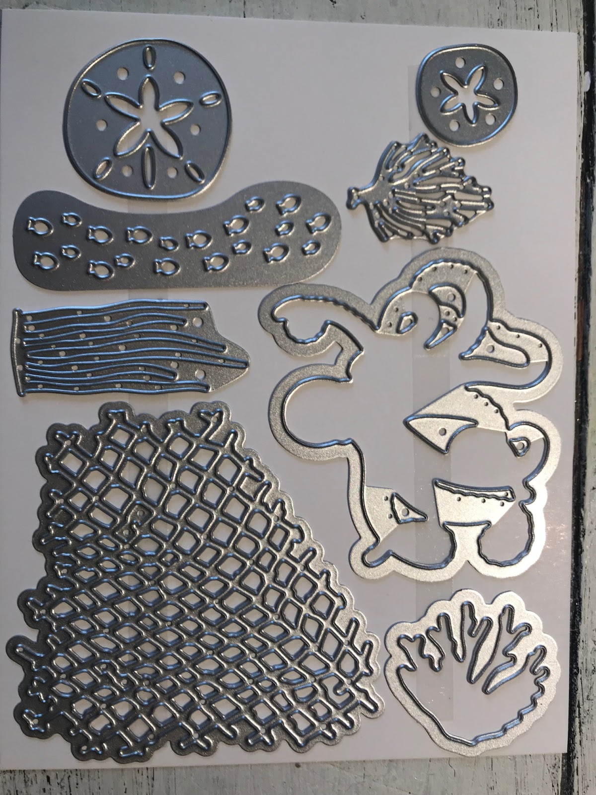 Did you LOVE those dies? The sand dollar/starfish? The NET???! The school of fish? How much fun will those little guys be in a shaker card? Is your mind “reeling?” Sorry, lol.