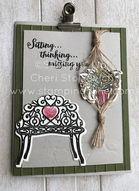 To see how I did the macrame’ just watch the video – much easier to see in person than it is to try to explain….. It is from one of the wider burlap ribbons that is currently in the catalog…and good news….it will still be available in the June new catalog!