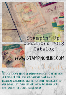 The stamp sets I use here will be available in January. Don’t have a demonstrator from whom you get a catalog? Let me know and I would be happy to send you the Occasions catalog when it becomes available later this year.