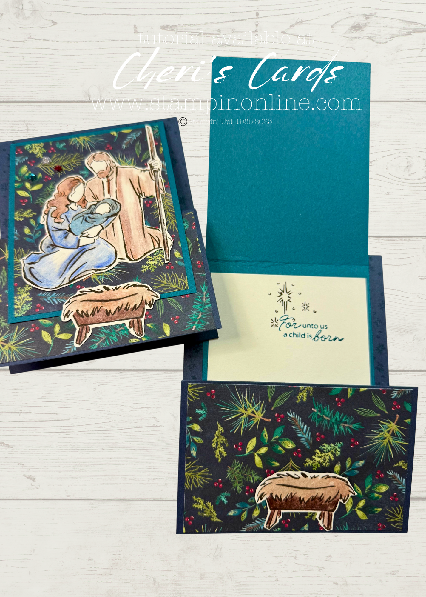 If you have any packets left over from your last try-it class featuring the fun fold on this page I will take one. I love cards made with the Holy Family. Please email the price to me.