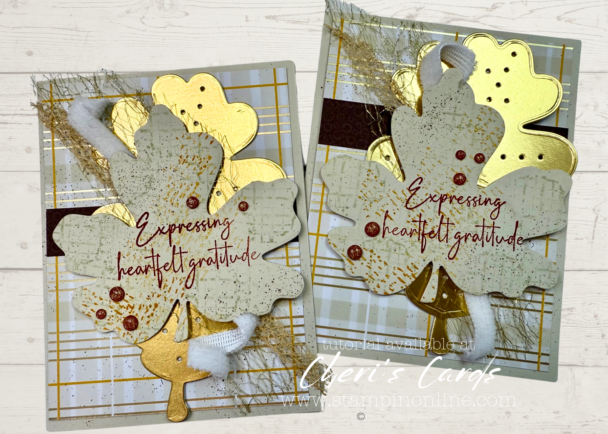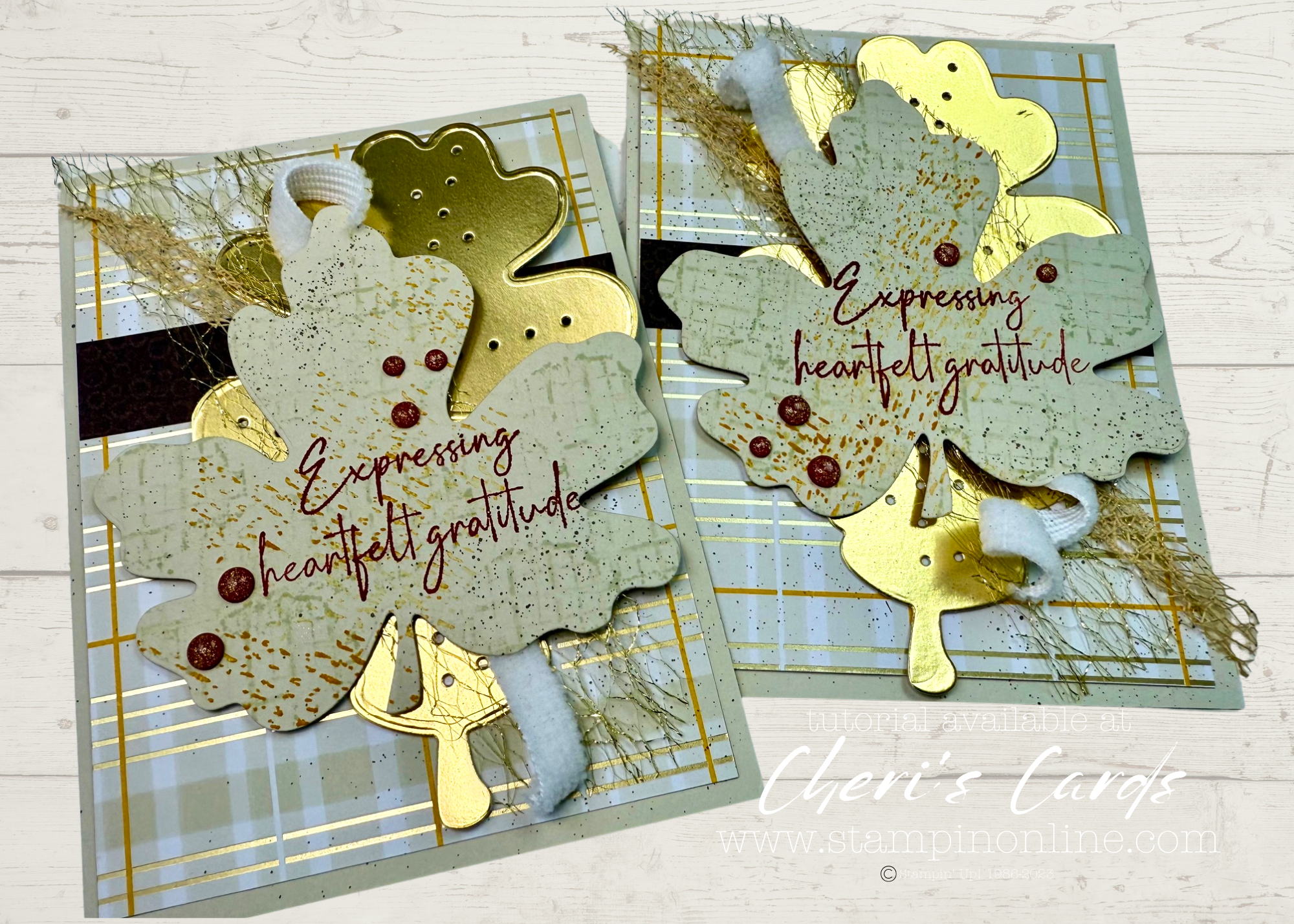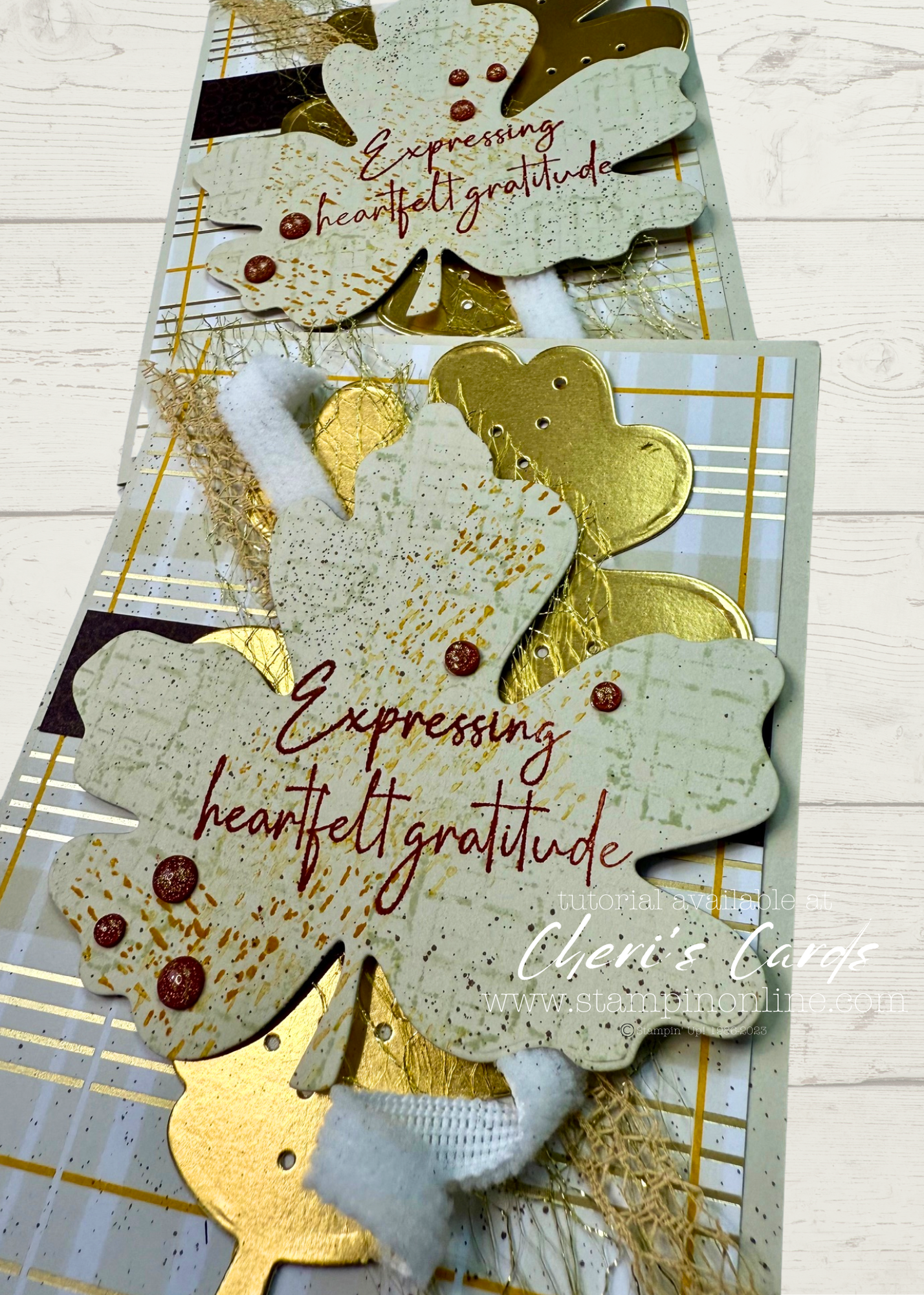 The ribbon that comes in the suite is twine. I wanted something a little more ‘fallen leaves crunchy’ so I combined 3 ribbons here. Two are sneak peek and the gold woven ribbon finds itself on the Last Chance list (say it ain’t so…I love that ribbon!)