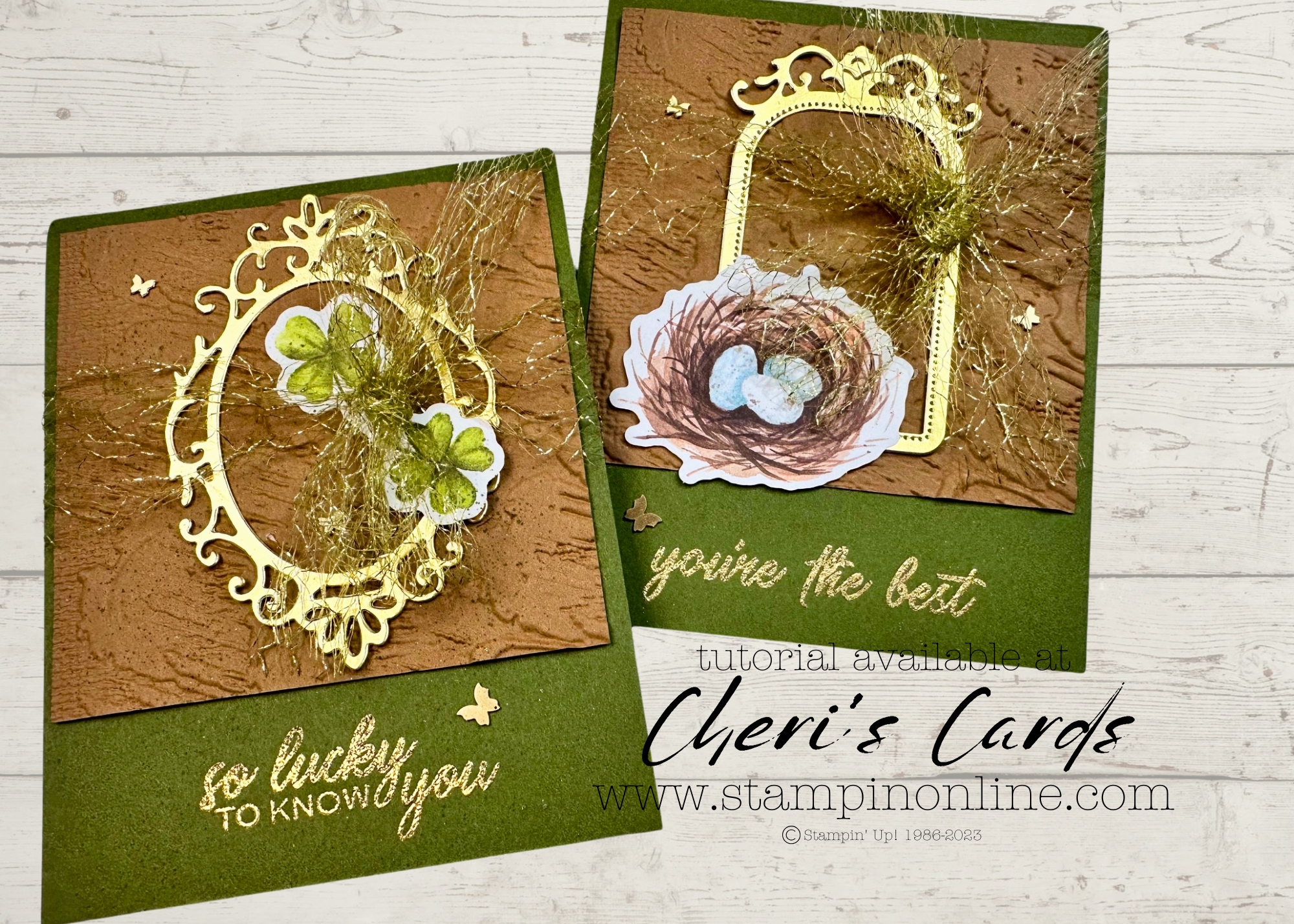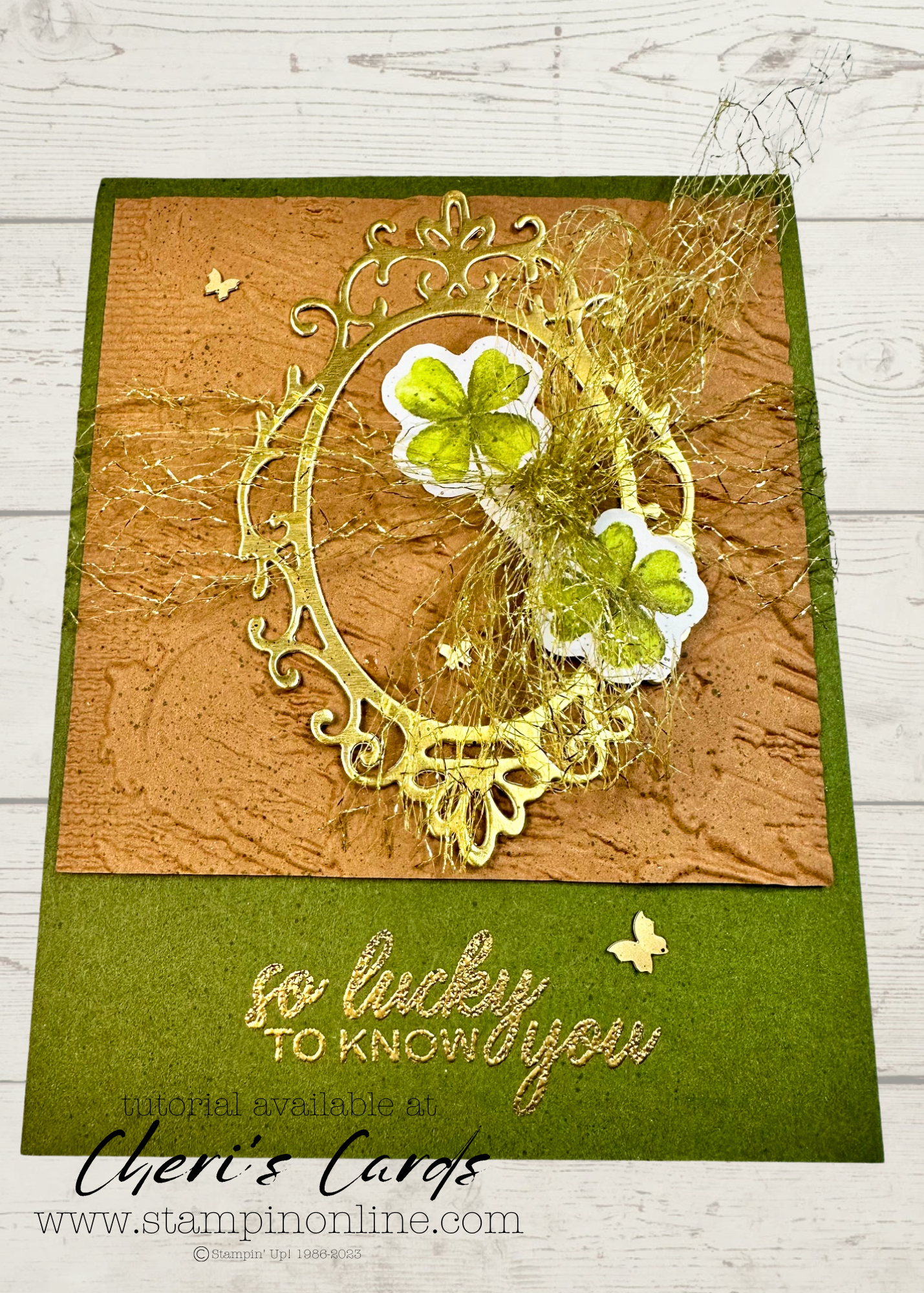 I used a new sneak peek sentiment stamp set (available March 4th). If you don’t mind not keeping with the gold theme, you can use the Greetings for All Ephemera pack (which includes a St Patrick’s day greeting and all your other spring needs!)