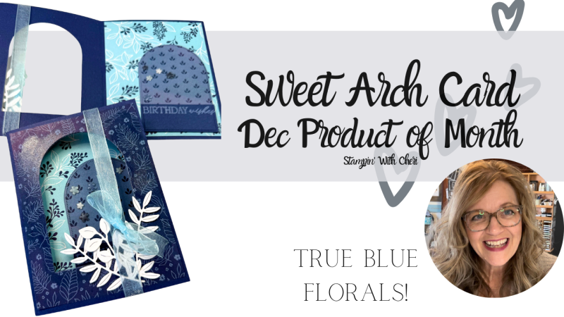 I combined 2 of the Balmy Blue and Night of Navy sheets for this card. This week was our annual Christmas tradition of lunch at Cake Bake and then a bit of shopping. In one of the trendiest areas of Indy you can tell that the 80’s are back. This pack of paper feels like an ode to the 80’s with the 2 colors of blue and the patterns on the ‘other side’ of the paper. Arches are also in in a BIG way, we saw arches everywhere.