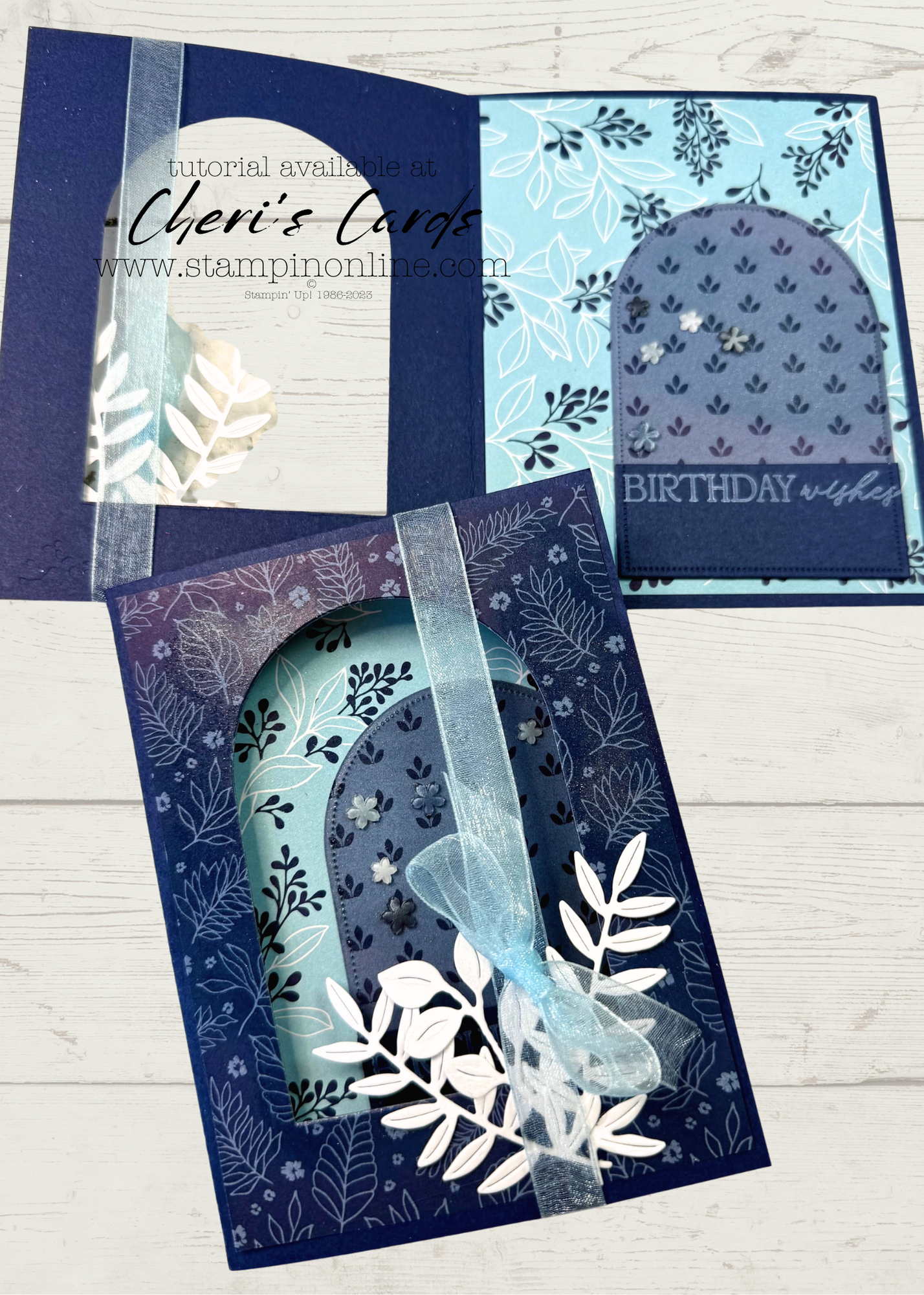 I combined 2 of the Balmy Blue and Night of Navy sheets for this card. This week was our annual Christmas tradition of lunch at Cake Bake and then a bit of shopping. In one of the trendiest areas of Indy you can tell that the 80’s are back. This pack of paper feels like an ode to the 80’s with the 2 colors of blue and the patterns on the ‘other side’ of the paper. Arches are also in in a BIG way, we saw arches everywhere.