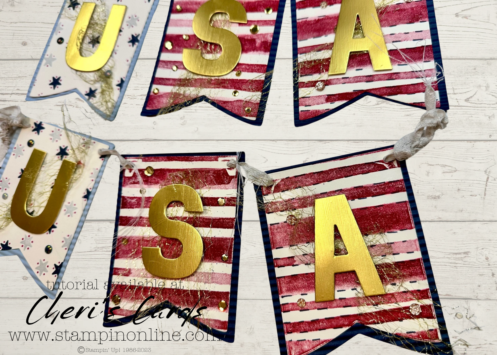 When doing your banners you can create them in countless ways. I wanted mine to resemble the stars and stripes – so I started with stars and stripes stamps. Most of us can find those in our stash if we have been stamping for a while, right?