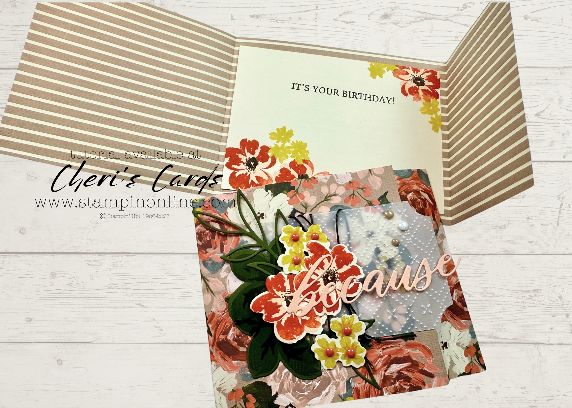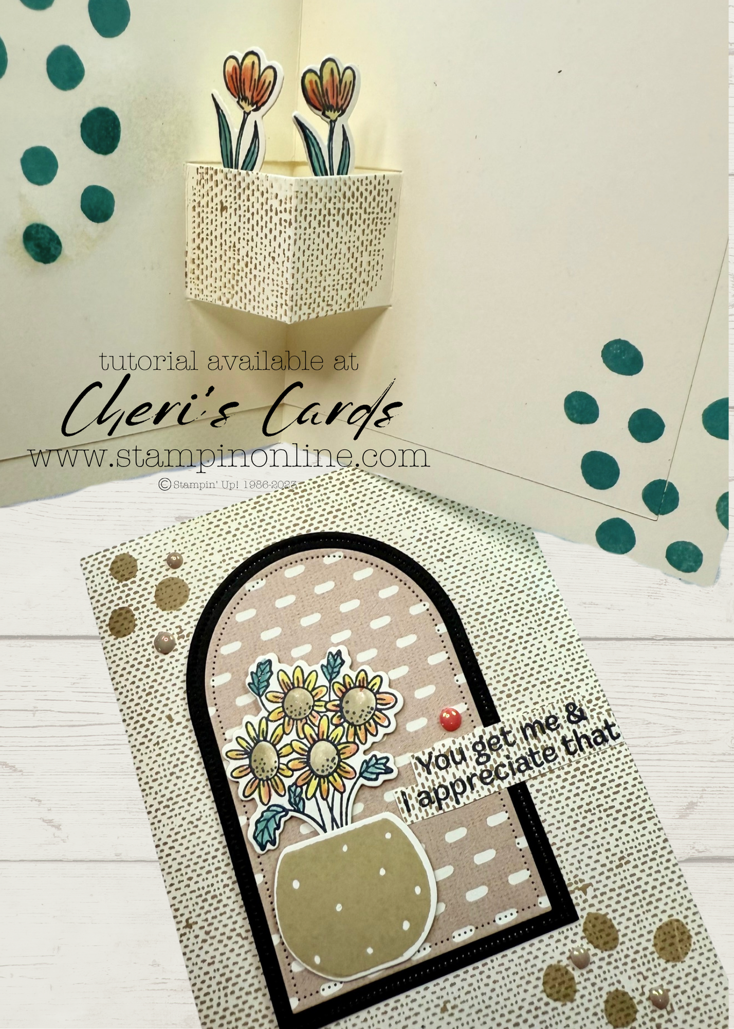 Now – to the tutorial. This features several sneak peek items. The Pop Up Petals is the bonus bundle for my November Card Club and the Lasting Linen can be purchased with club for the discount as well!