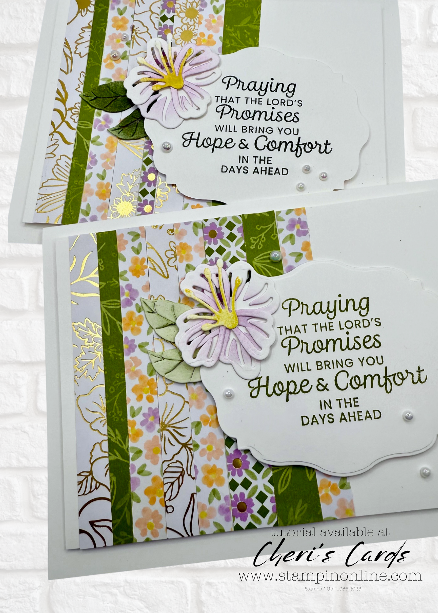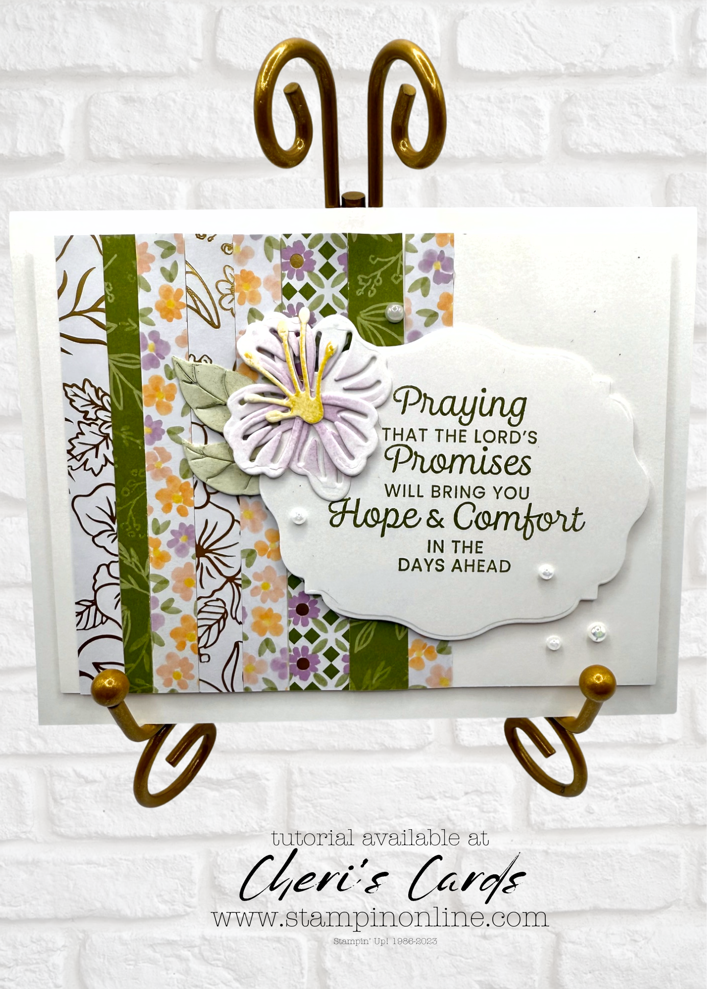 Today’s project combines the DSP from my February Card Club with one of the bonus add ons for this month – Prayers and Promises. They come together to make a lovely sympathy card.
