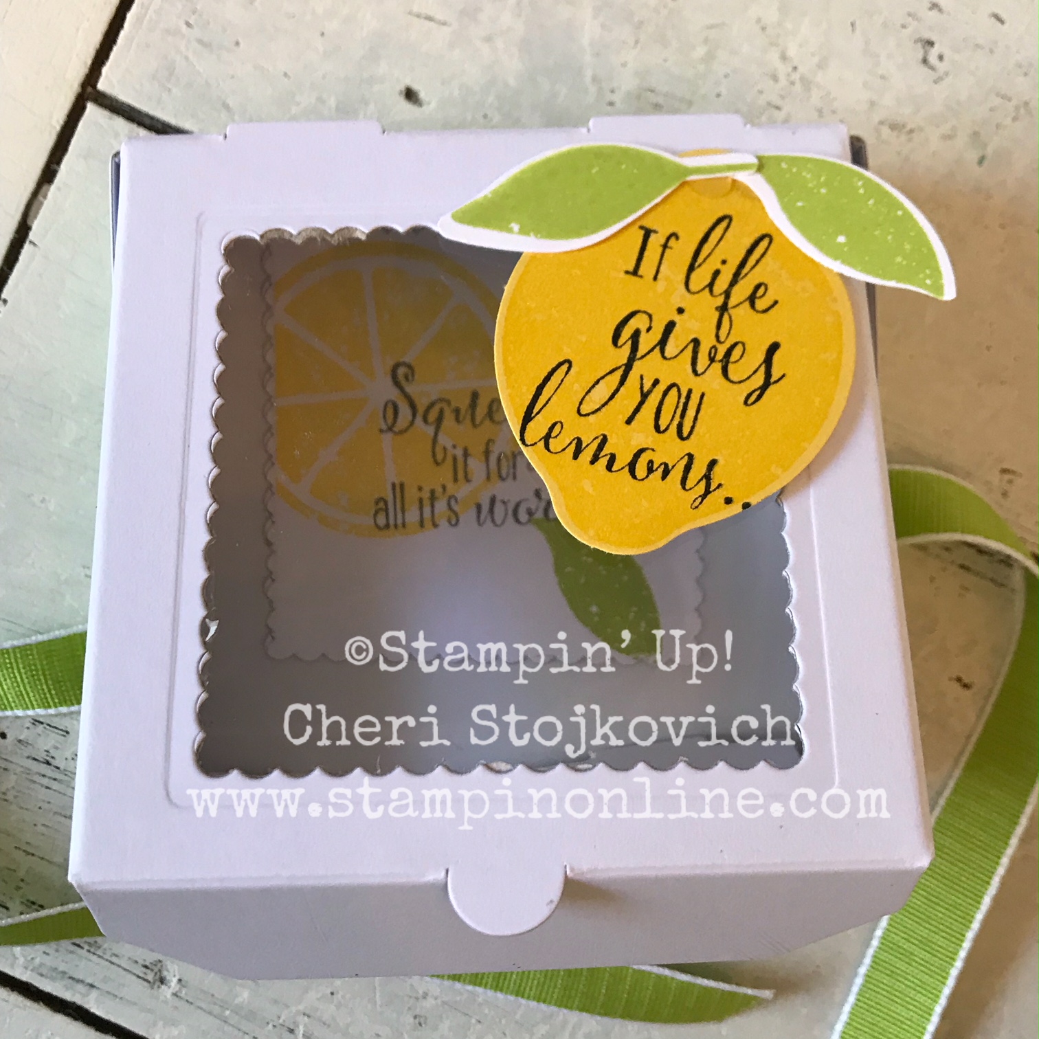 Today’s video is a full demonstration – so I will just leave the pictures here – and let the video do the talking! You all know how much I LOVE Stampin’ Up!’s mini pizza boxes for creating great little treat holders. Watch just how simply they work to set off this impressive Lemon Squares Treat!