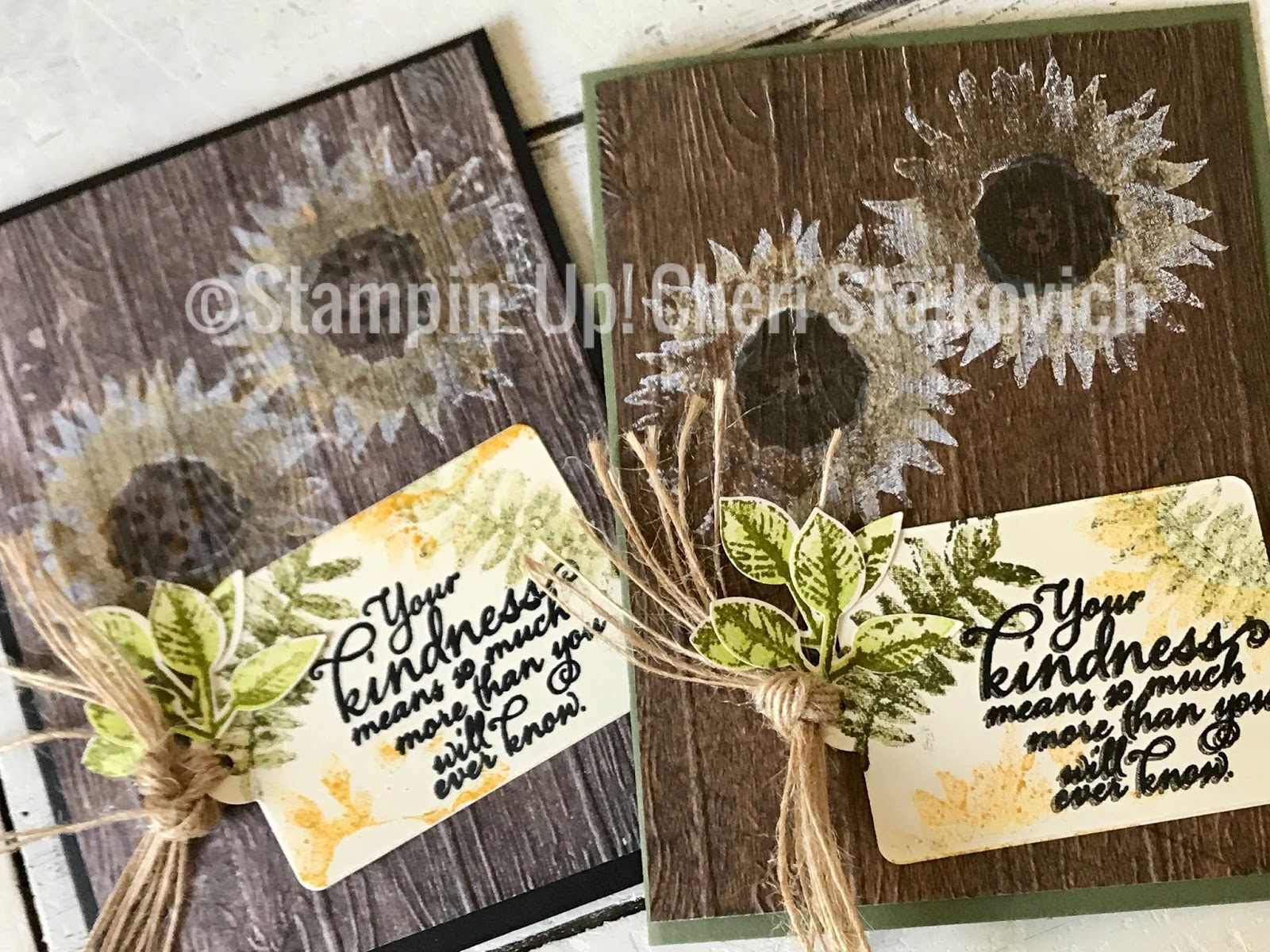 My take goes with a more traditional sunflower color scheme as I included the yellow – last night while stamping with some of my team she did hers in blue. It is gorgeous and next week I will show you what she designed.