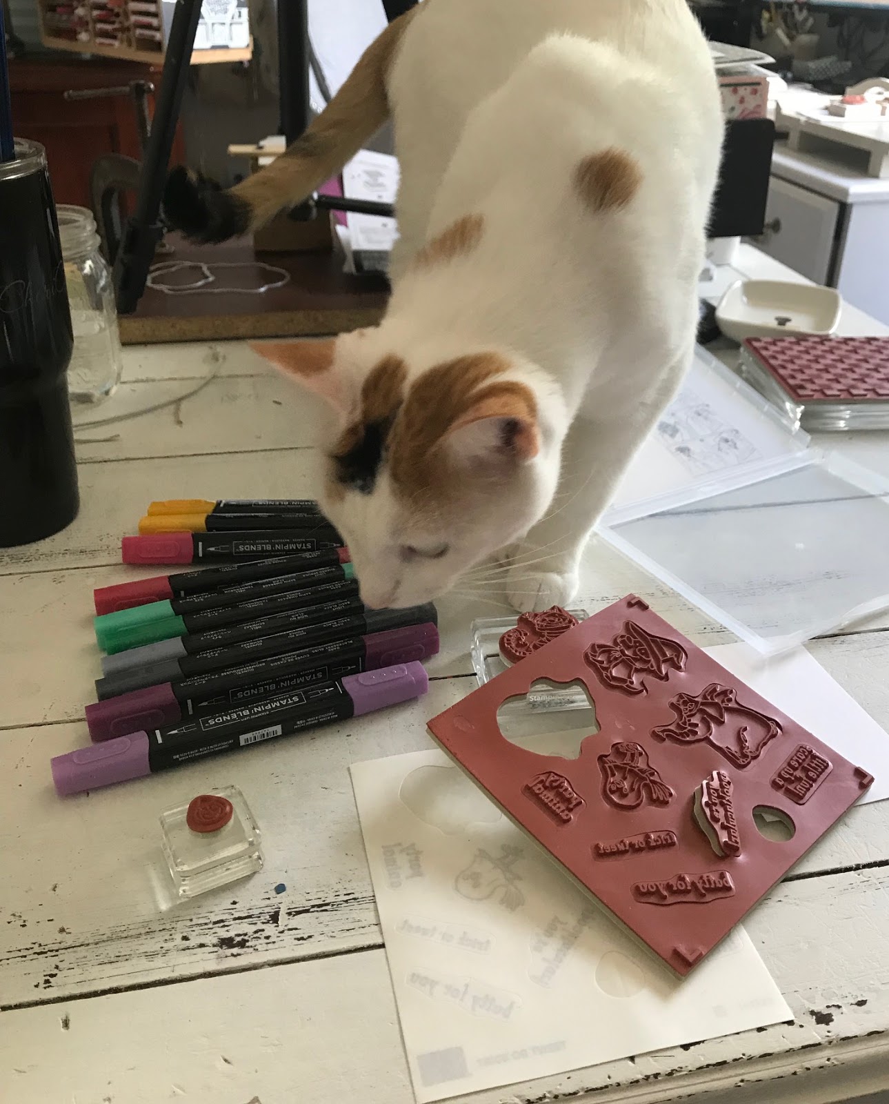 If you caught my video on how to use our new ink pads and NEVER get ink on your fingers….this is my little assistant helping out in the filming of that one.