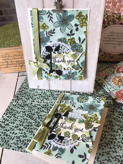 Two of the bundles include free items from Stampin’ Up! You can catch a sneak peek of an embellishment kit here. It comes in a sweet little box that has our Statement on the Heart on top. To the left is my “vintage” Statement of the Heart stamp – circa 1999. See…no matter HOW long you have something…it is sure to still match current things, lol.