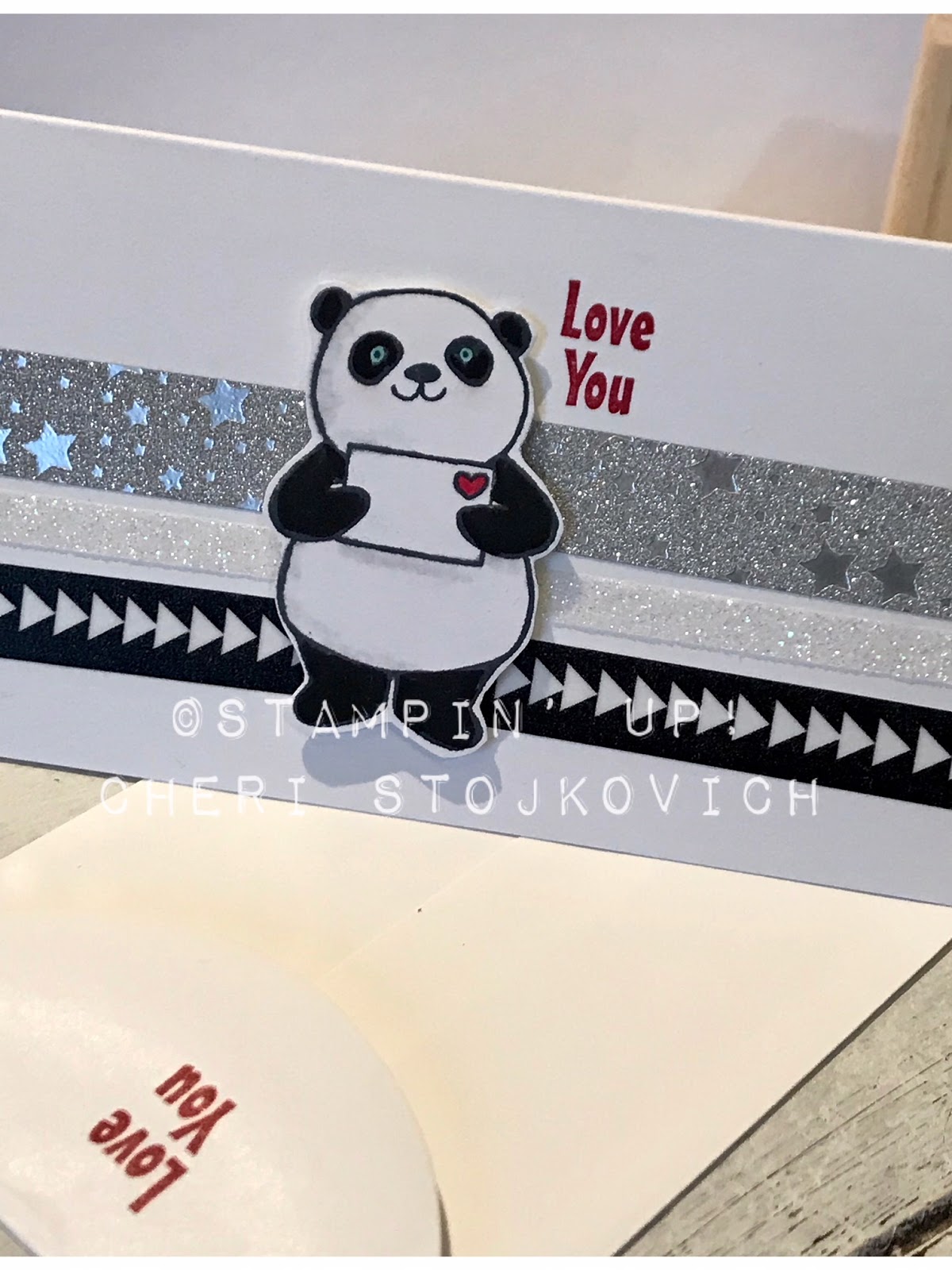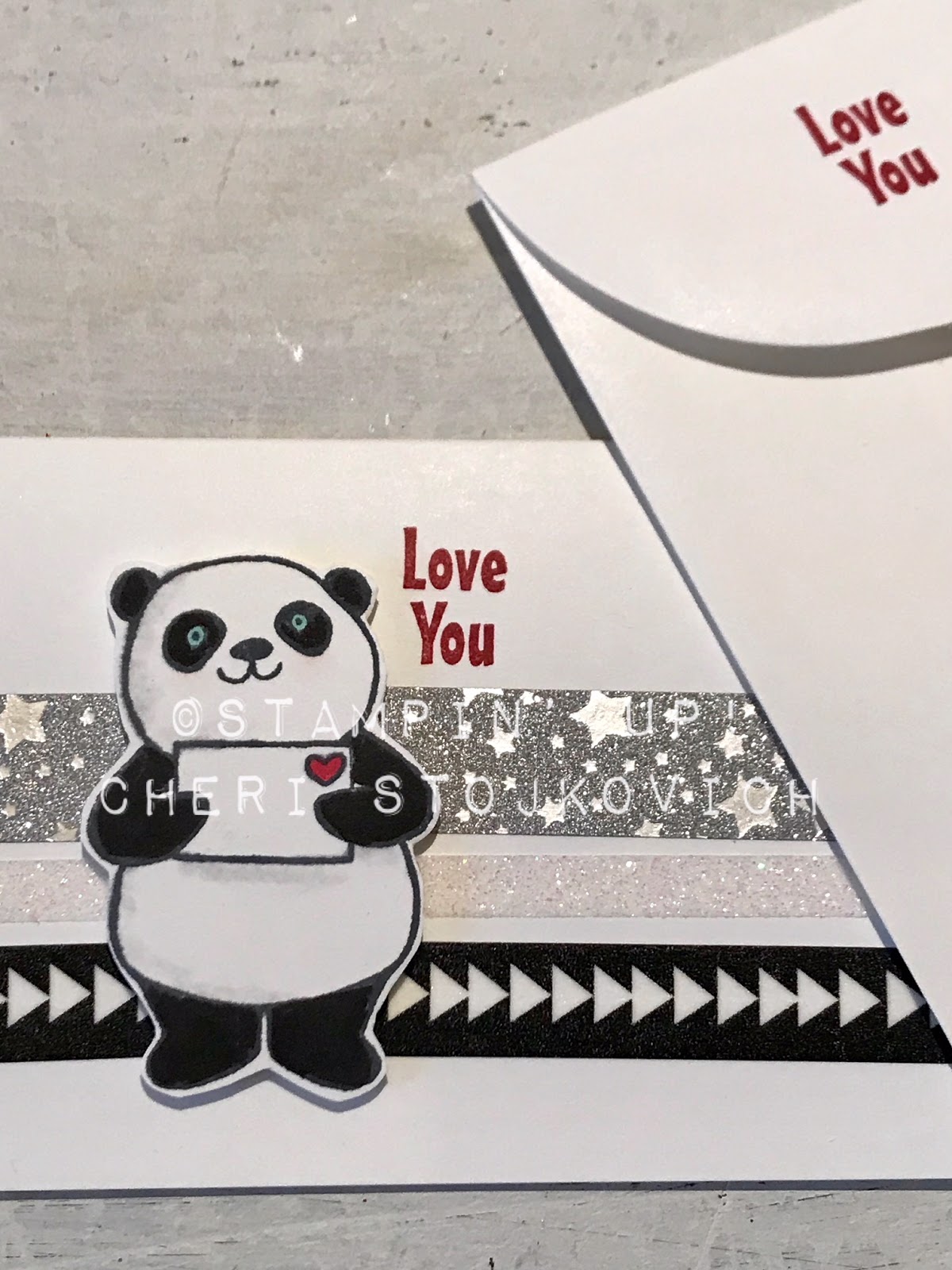 Simple, eh? The little Narrow Notecards and envelopes are perfect for adding to your Valentine treats. There are 20 in the package, so once Valentines is over – switch it up and use the other Pandas in your set to make some Birthday and Celebration greetings!