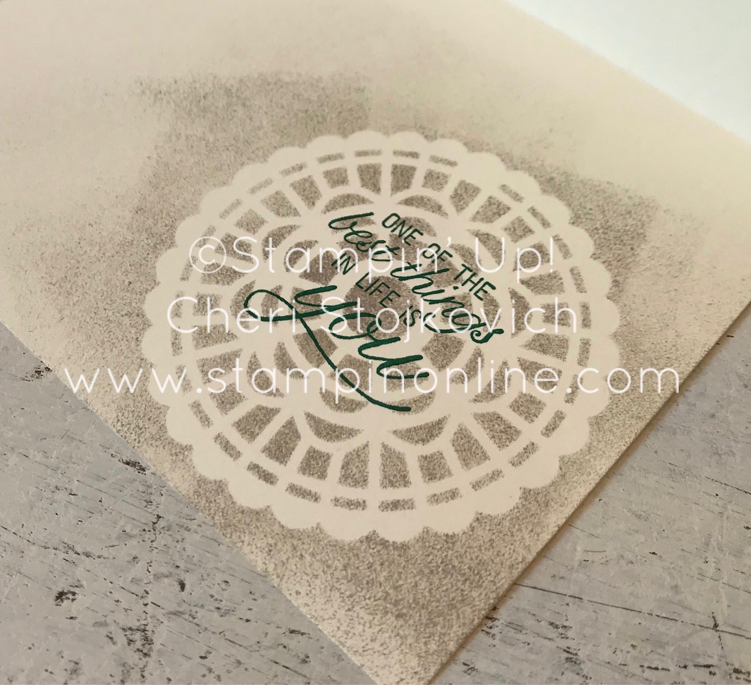 This set is one of the new hostess sets from the catalog this year. There are several sets in this 30th anniversary catalog that have a ‘feel’ to sets that were around waaaaay back when – you know in those early days when some of us where around and the internet didn’t exist for us to even post a card or dream of TAKING A PICTURE ON A PHONE with! This set reminds me of some of these sets. I love the collage style. I also used some of the new colors – I can already tell that the Granite will be making appearances on many, many projects to come.