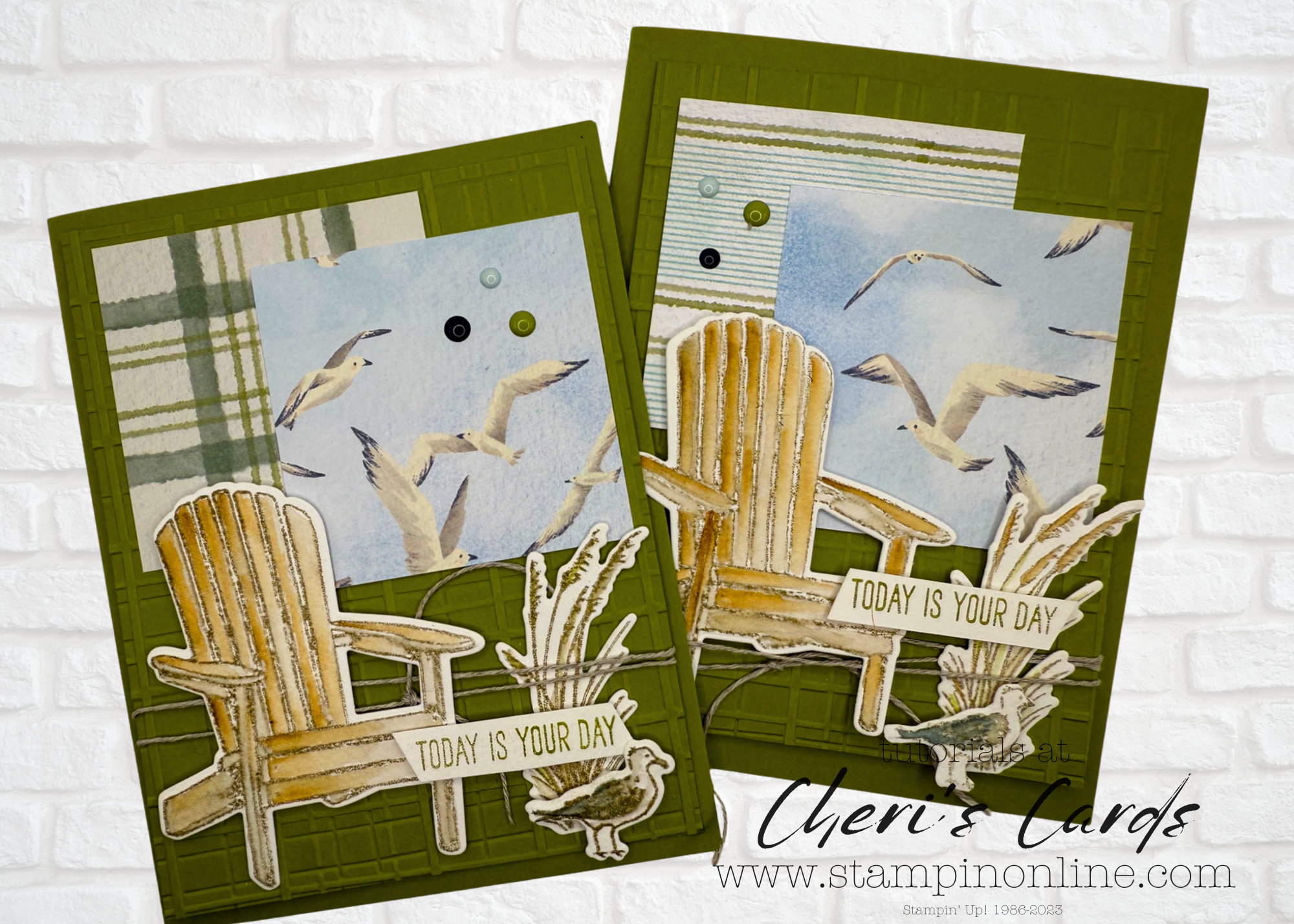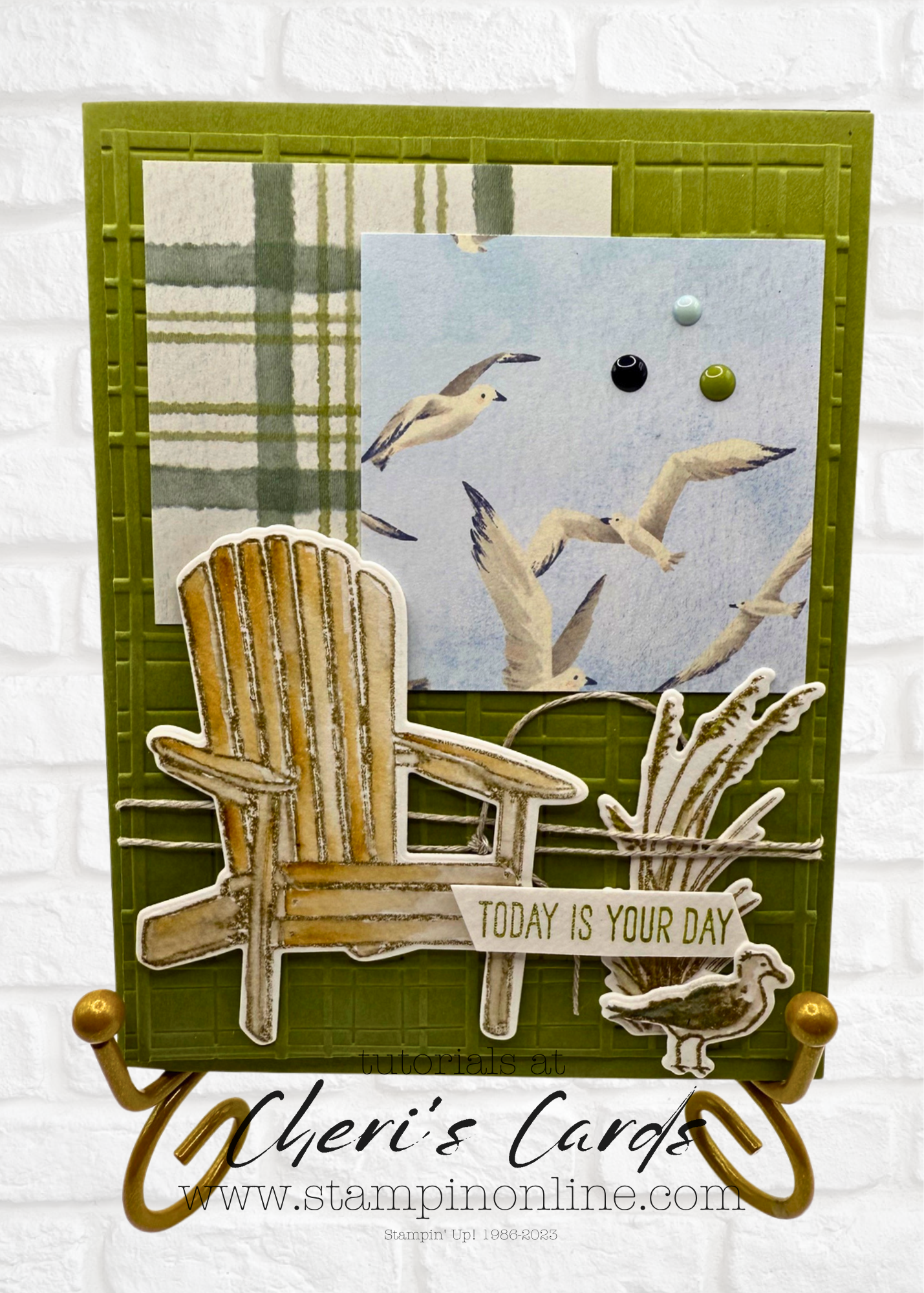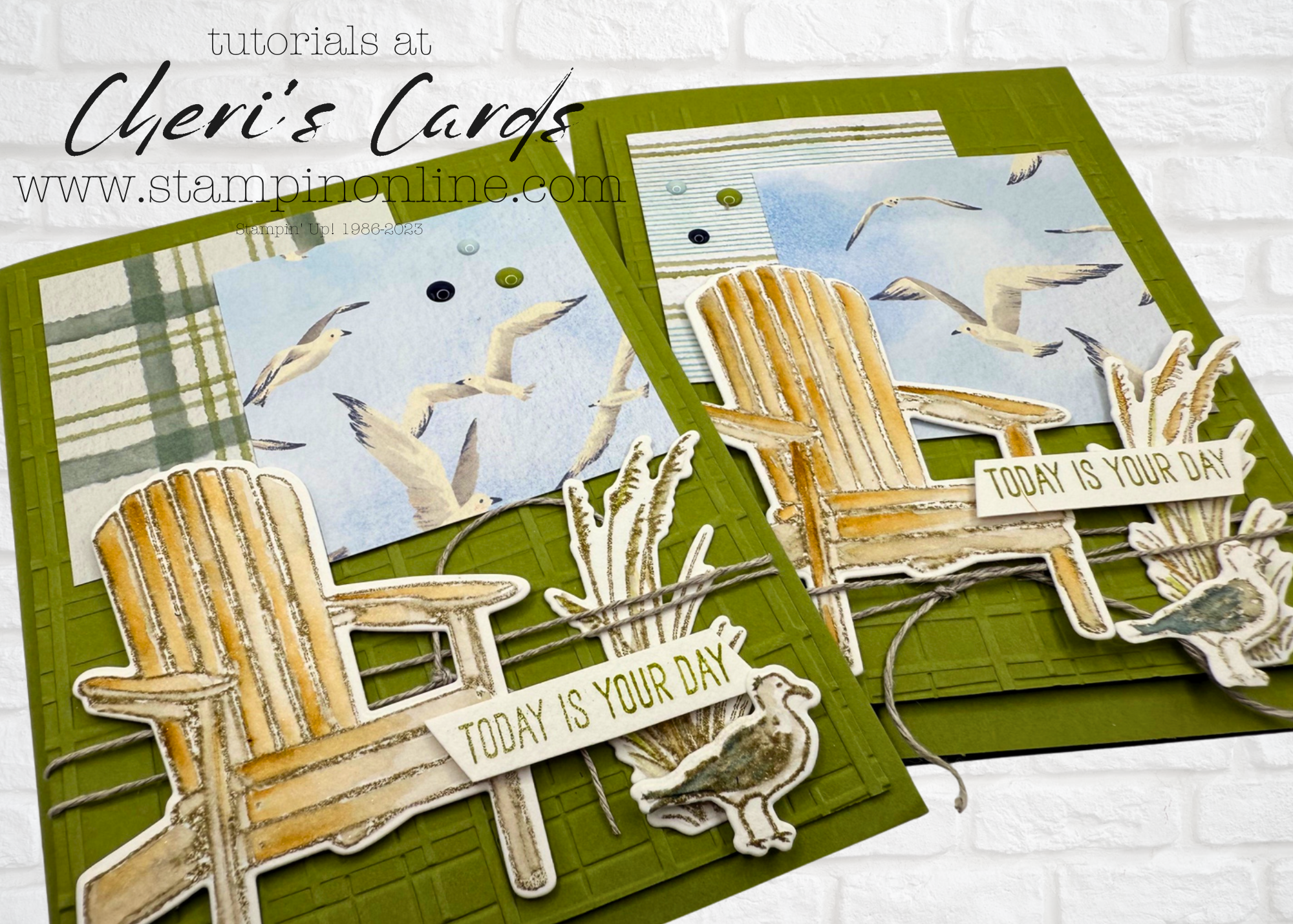 Once you get your hands on this suite it will help you in creating for those that love the water, fishing, boating and just lake life in general. The dies allow for building your own beach chairs or stamping them as I did here.
