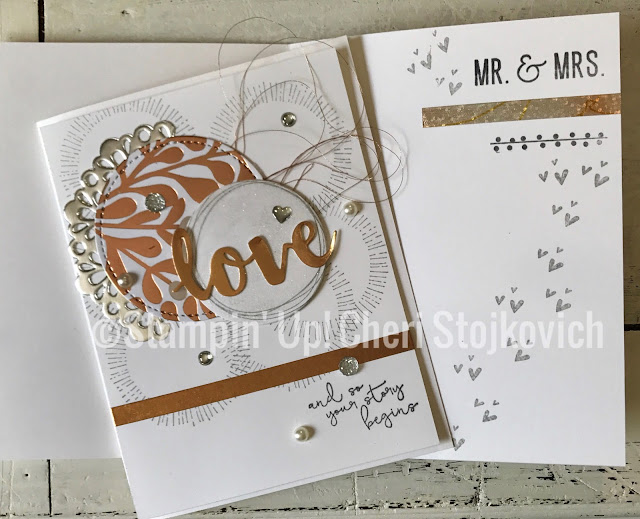 This lovely card is made with the new Year of Cheer suite. What do I love about it?? Well – the CHAMPAGNE foil paper for starters. Beautiful. The designer series paper are all metallic. The washi tape is also foil. The samples in the catalog – so very pretty!