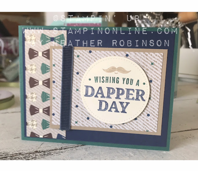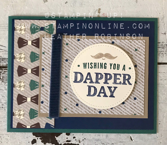 She used the True Gentlemen suite. It does show up a tiny bit in the picture, but that corduroy ribbon – it is so lush. Soft and gives such texture to the card. Any guy in your life would be sure to love to get this card.