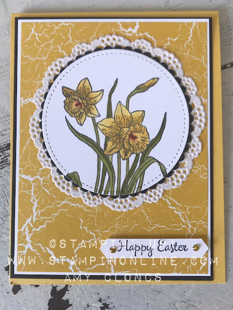 Amy did an elegant Easter card. Daffodils ARE coming (as I type the giant snowflakes are falling fast….but spring will be here soon and one of our first signs will be when the daffodils start to push up out of the ground)