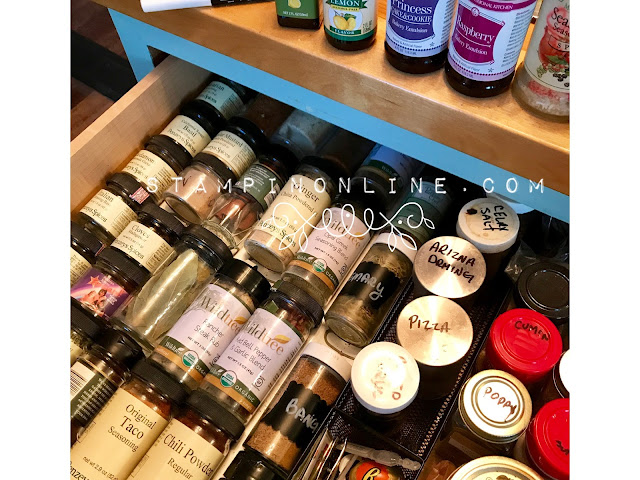 That said – I have the leaf card from Tuesday, worked on a project as I stamped with friends most of the day today AND some new blend things to show……BUT the project I took to work on today required me getting something out of my spice cabinet….I KNEW I had cloves – but it was a disorganized mess. When I got home this evening – spices everywhere. With all of the rest of the mess – this was one little mess that I could “quickly” control.