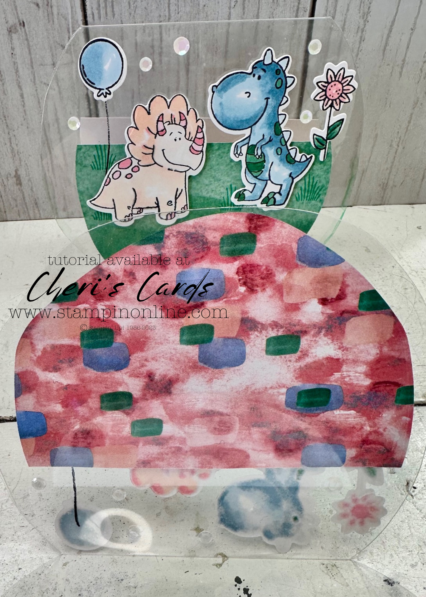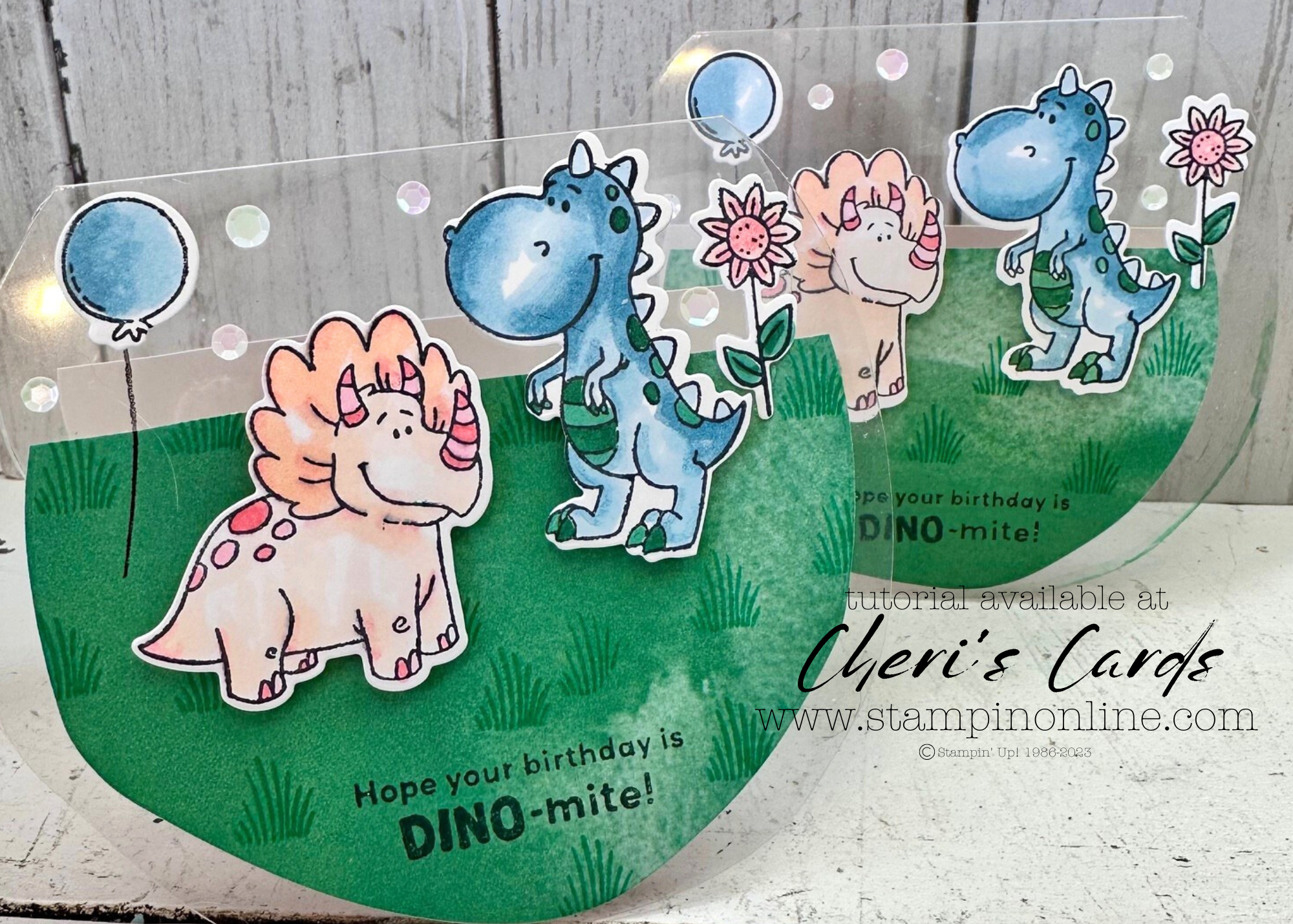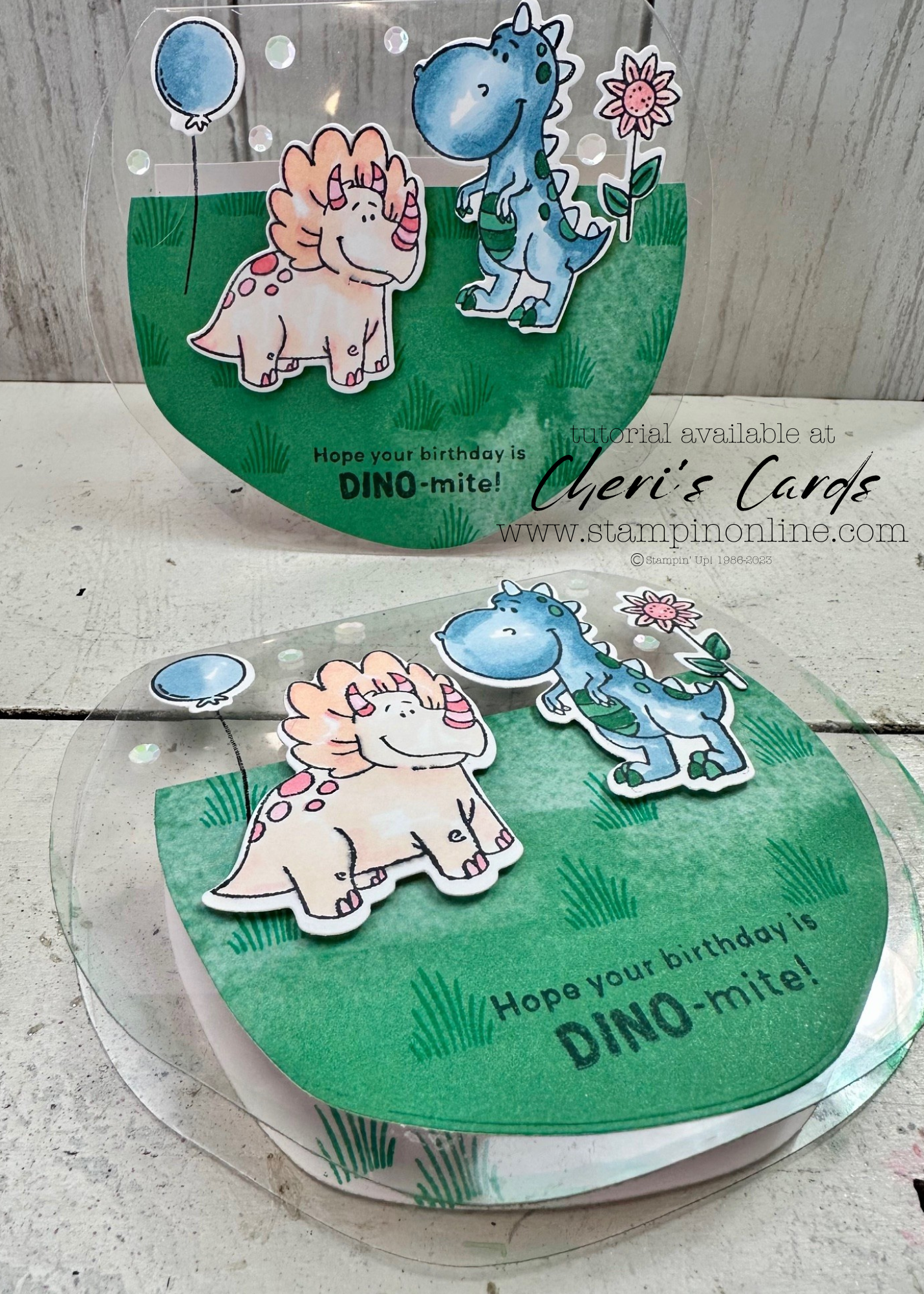 The inside of the card inspired my color combination. Because the Blends bleed through their little dino heads are perfect with the inside. There is a matching inside bottom panel too, I just forgot to take the photo of it. You can see it in the video though!
