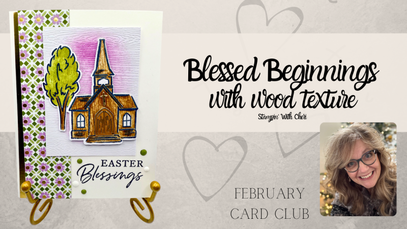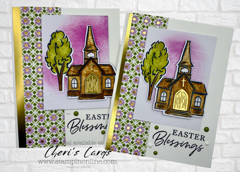 Today our card is a church on a glorious spring sunrise – I chose to make this an Easter card featuring the wooden church. It’s a great combination of the Blessed Beginnings bundle with the Wood Textured paper!